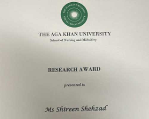 “Farida Allana Research Award” Aga Khan University Rho Delta Chapter, Sigma Theta Tau International | 2022
