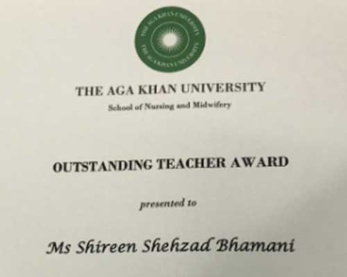 “Outstanding Teacher Award For Classroom Teaching” Aga Khan University School of Nursing and Midwifery (AKUSONAM) | 2018